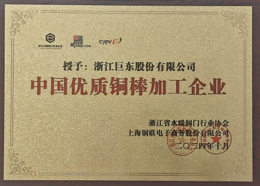2024年中國品牌價值榜第37 2024年1月獲浙江省冶金有色行業(yè)協(xié)會協(xié)會會員證書 2024年8月獲浙江省冶金有色行業(yè)協(xié)會會員單位銅牌 2024年10月獲中國優(yōu)質銅棒加工企業(yè) 2024年10月獲產品碳足跡認證證書 2024年獲2023年有色金屬營收企業(yè)20強第19強 2024年獲中國循環(huán)經濟協(xié)會理事單位證書
