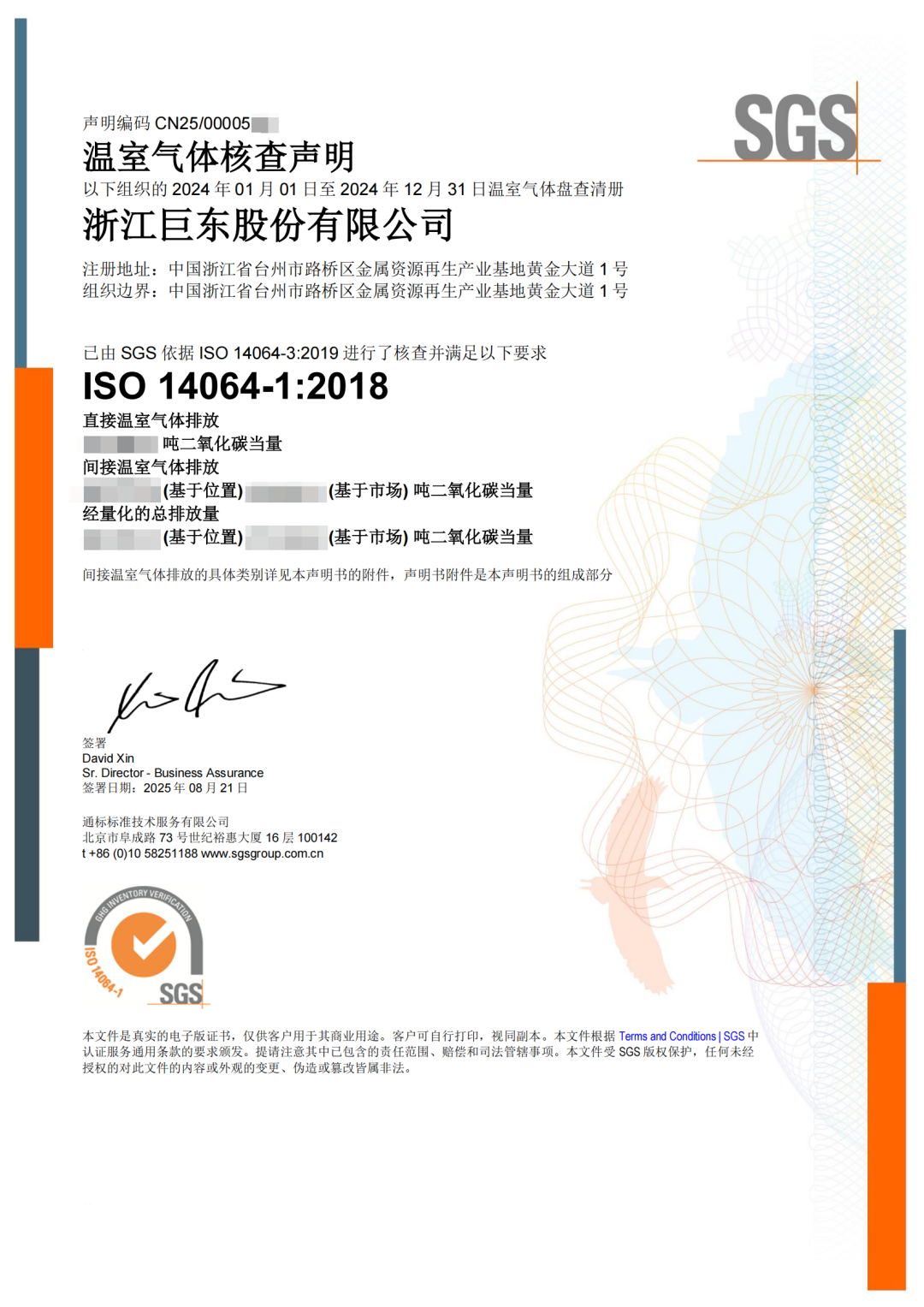 2025年2月獲2024年度路橋區(qū)制造業(yè)高質量發(fā)展先進企業(yè) 2025年2月獲省民營經濟總部企業(yè) 2025年2月獲生產制造方式轉型示范項目 2025年5月獲中國品牌價值評價結果通知書-品牌價值11億元 2025年8月獲溫室氣體核查聲明 2025年9月獲2024年有色金屬營收企業(yè)30強第21強